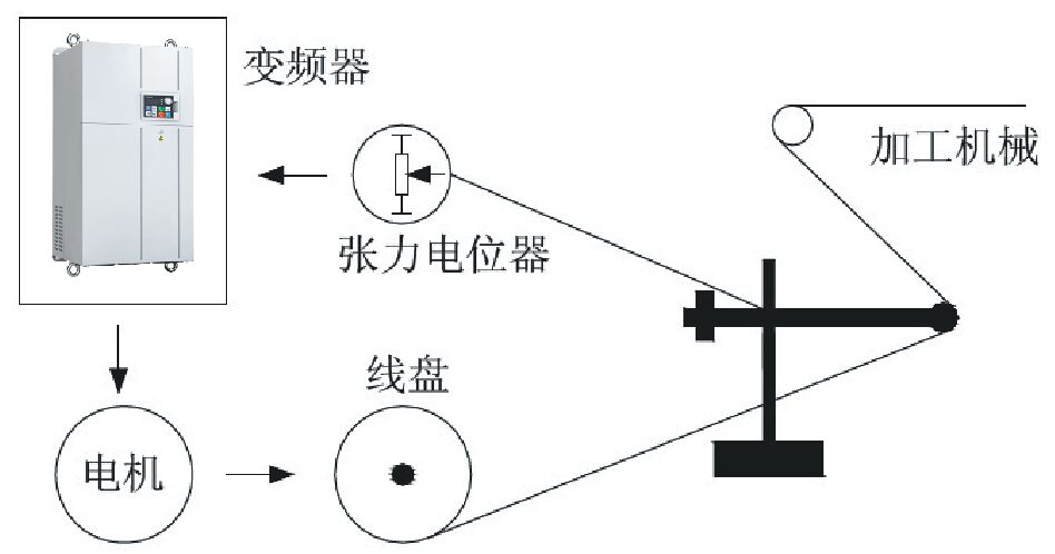 在电线电缆行业中,许多工艺流程都是从放线开始到收线结束,其中放线环节中,怎样克服放线过程中的放线张力不均匀的现象,是许多设备设计工程师与产品控制工程师所迫切解决的问题。在以往的电气设计过程中,电气设计工程师常采用PLC的A/D、D/A模块、张力控制工艺PCB板,通过读起张力摆杆电位器的电位来获得所需求的放线快慢程度,这种保持张力恒定的方法,由于一般情况下采取张力摆杆电位器的信号线及从D/A模块发出的控制变频器速度的模拟信号线过长容易造成信号的失真,再加上不同轴径的收线轮对应着不同的PLC的PID内部调节参数,如PID设定不合适,容易让电气控制下的放线轮处于不稳定状态,最终让张力处于难于恒定的状态,从而影响产品的品质。