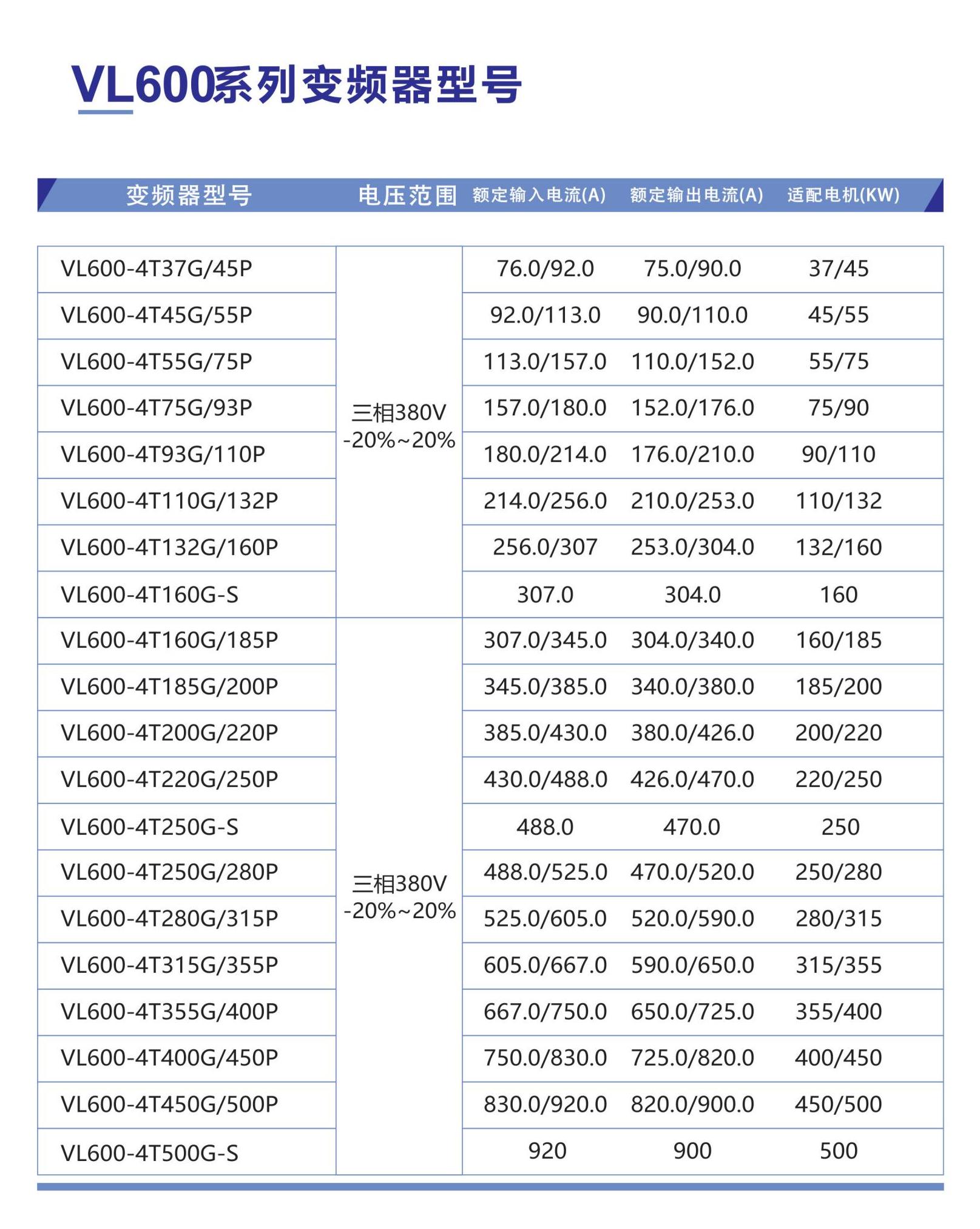 The VL600 series is a high-performance, easy-to-use frequency converter launched by Langqu Electric through in-depth market research. This series of frequency converters has excellent performance, reliability, stability, and compact structure, making it easy to cope with the difficulties and pain points in industry applications, and will bring you an excellent user experience. The VL600 series is a universal frequency converter platform for the company, with voltage levels of single-phase 220V, three-phase 220V, and three-phase 380V, covering the full power range. It combines VF control, open-loop vector control, and closed-loop vector control for asynchronous motors The VL600S series frequency converter is a dedicated permanent magnet synchronous frequency converter, which combines open-loop vector control and closed-loop vector control of permanent magnet synchronous motors; VL600H is an open-loop vector for high-speed permanent magnet synchronous motors, mainly designed for high-speed silent permanent magnet synchronous motors, such as high-speed fans, magnetic levitation fans, high-speed electric spindles, etc.