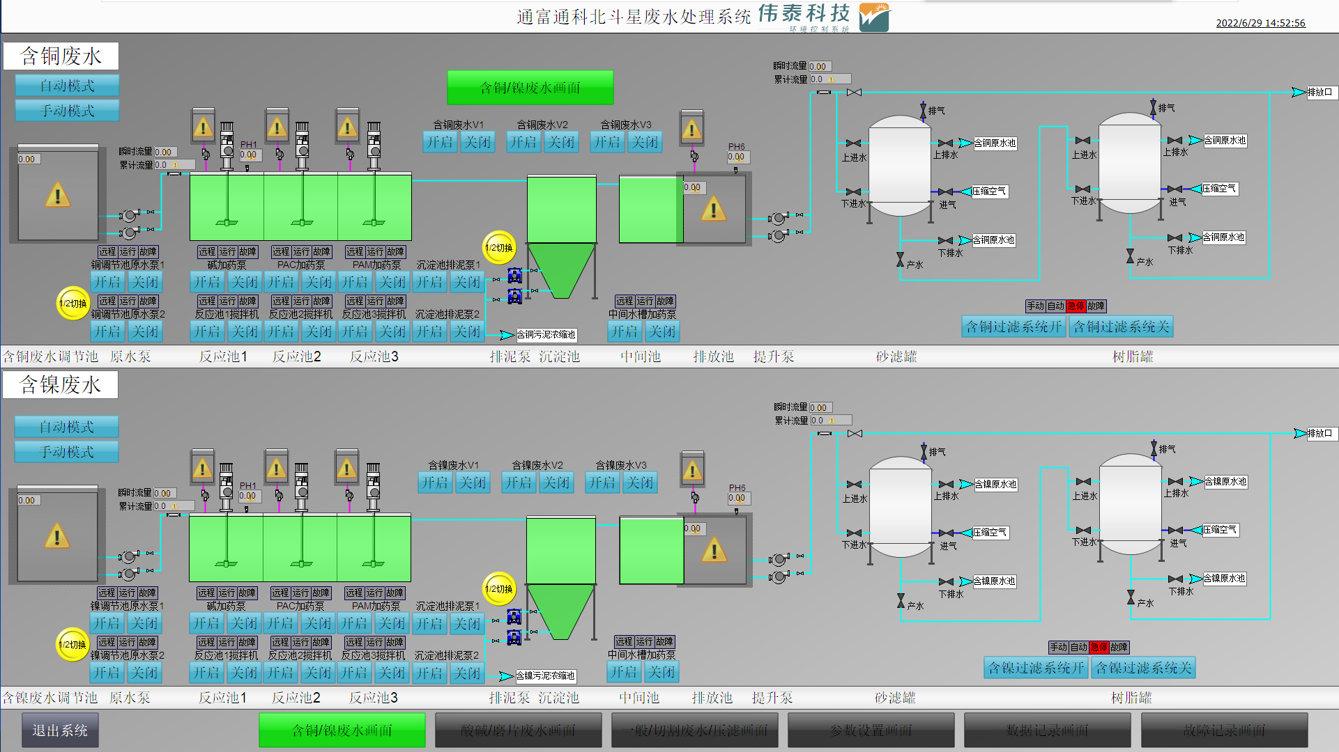 主要功能:本控制系統將自動控制技術與智能監控管理技術相結合,基於污水處理廠流程控制思想開發,立足於保證污水處理廠穩定運行的前提下最大程度的實現節能降耗。