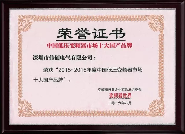 在一年一度的行业奖项评选活动中,伟创电气再次荣获“中国低压变频器十大国产品牌”。该奖项经过网络投票、市场调研数据统计和专家评选等多个环节,又一个被伟创获得。近年来,伟创电气在品牌建设、市场占有率、行业应用等方面都取得了卓越的成就,连续多年获评“中国低压变频器十大国产品牌”称号,此项殊荣充分体现了伟创电气在行业内的影响力,在广大用户对伟创电气技术、产品和服务的高度认可。